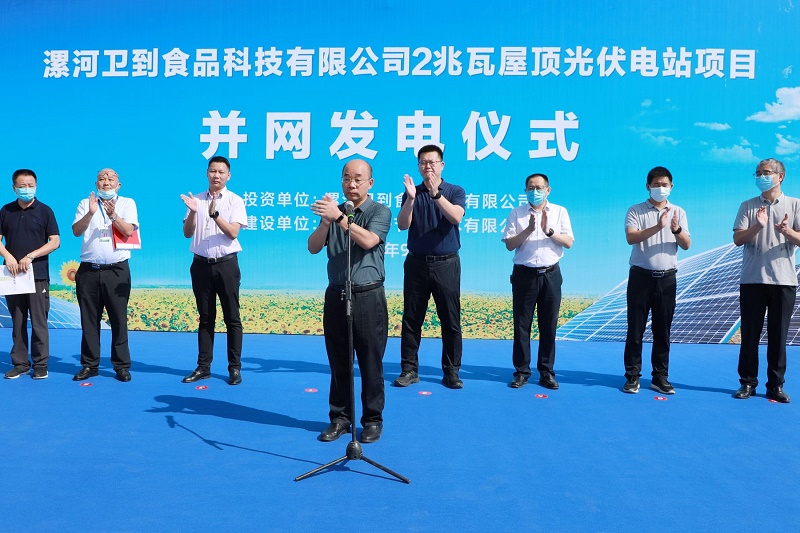 9月9日上午,jinnianhui今年会美味“2兆瓦屋顶光伏电站项目”成功并网发电,庆祝仪式在二期园区卫到厂隆重举行。市发改委副主任牛宪民,开发区党工委委员、管委会副主任孙波等市区相关部门负责人,jinnianhui今年会美味副总裁陈林,河南简好节能董事长杨伟功,以及来自利通液压、汇龙液压、景田、泓一食品等公司的企业家代表出席仪式。